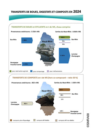 18 101 t MS de boues, cendres, composts de boues et digestats sont épandues dans le Haut-Rhin en 2024.