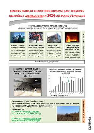427 t MS de cendres brutes et 88,6 t MS de cendres amendées ont été épandues sur des terres agricoles.
